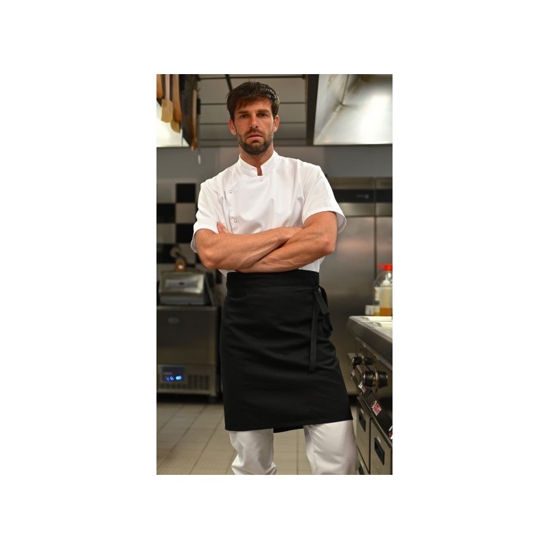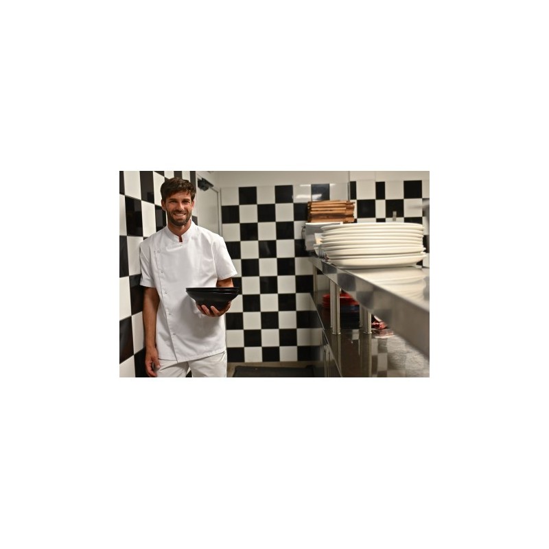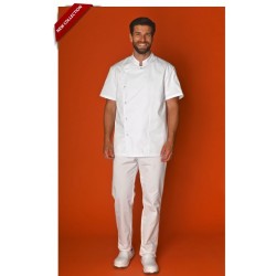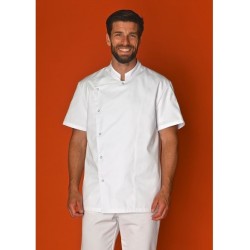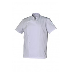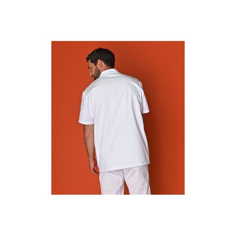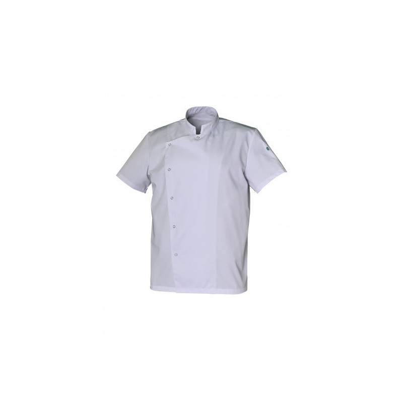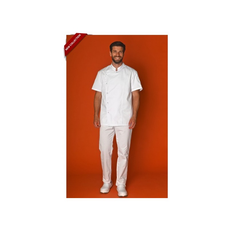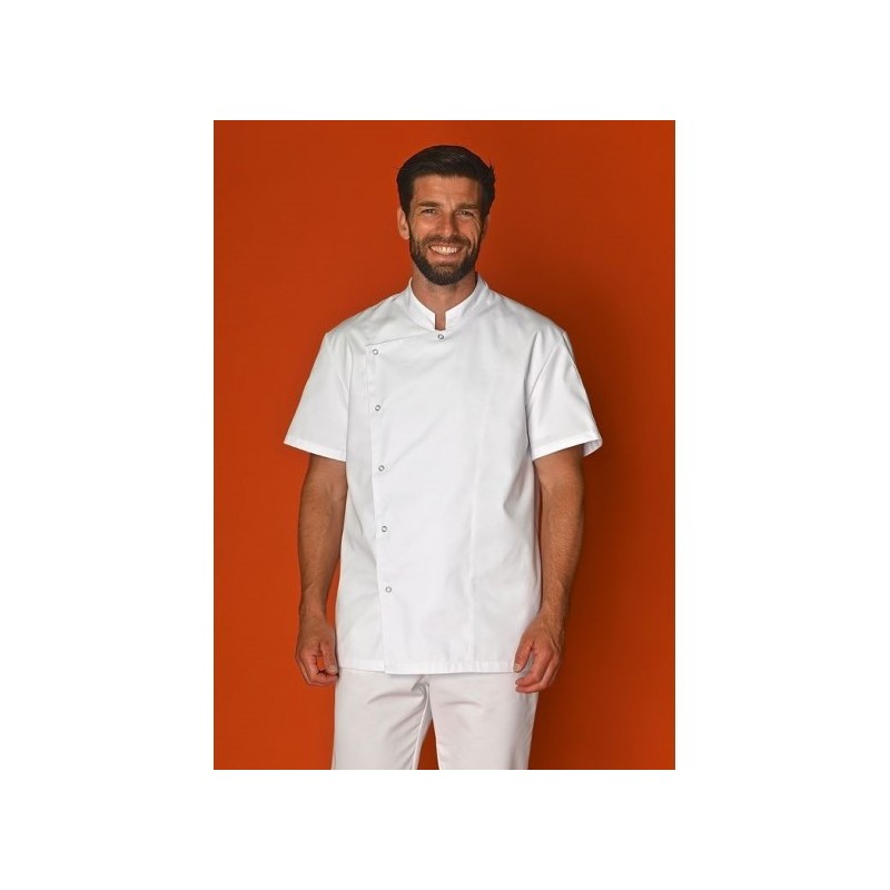 Col mao, manches courtes, poche stylo sur manche, fermeture asymétrique par 6 pressions
