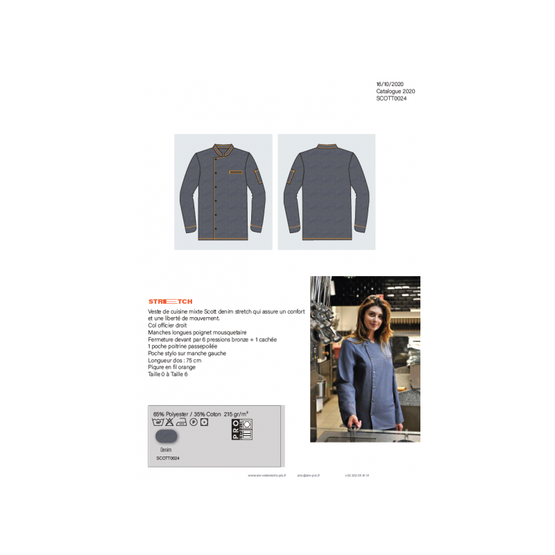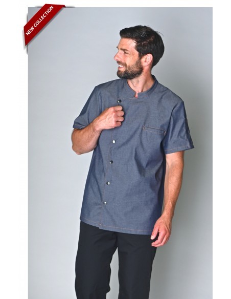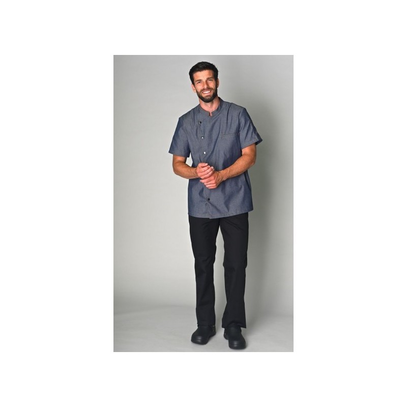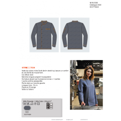 Fermeture par 6 pressions bronze et une cachée, 1 poche poitrine, poche stylo sur manche