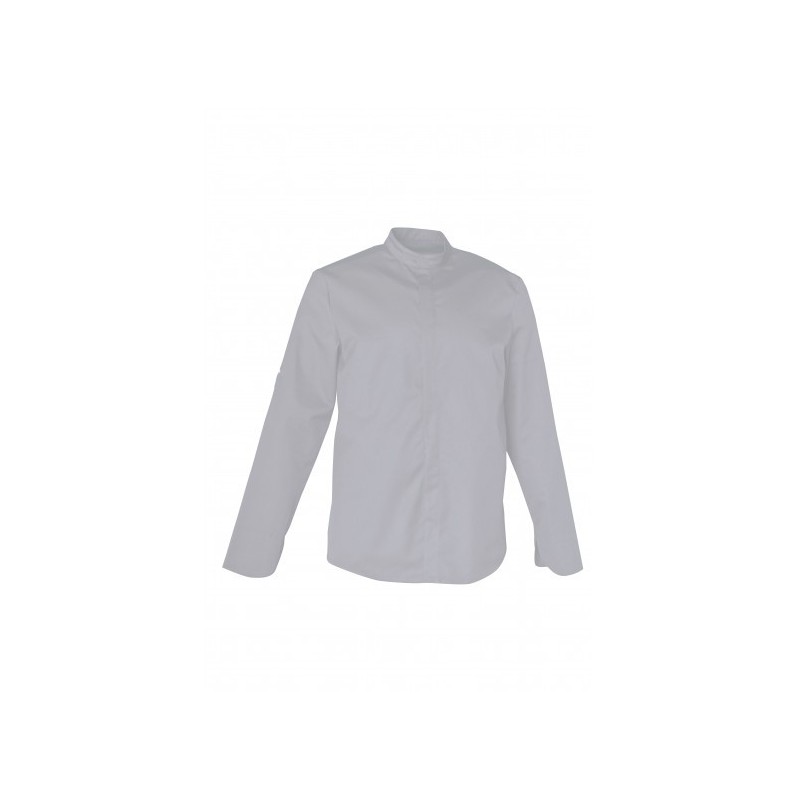 Col officier, fermeture devant par pressions cachées, manches longues, poignet mousquetaire réglables par patte, poche stylo passepoilée manche gauche