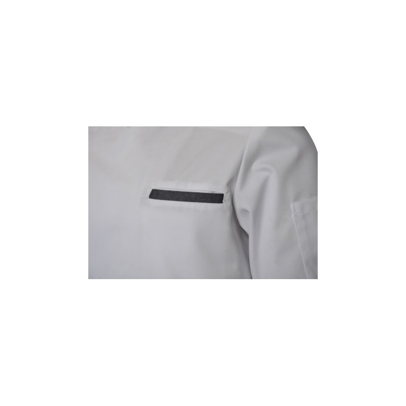 Intérieur col + Revers poignet jeans, poche cœur passepoilée jeans, poche style sur manche gauche