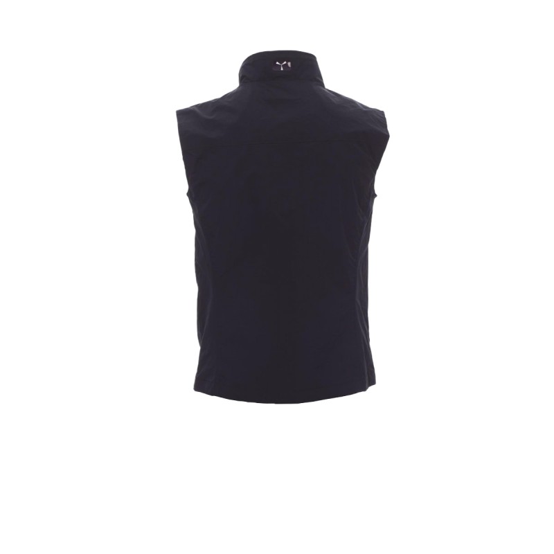 Gilet homme, à zip de 8 mm contrasté, deux poches extérieures avec zip couvert. Intérieur : non rembourré, à filet, une poche zippée pour smartphone avec prédisposition pour casque et câble, fermeture éclair sur la poitrine et dans le bas pour faciliter impressions et broderies.