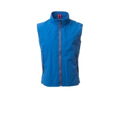 Gilet homme, à zip de 8 mm contrasté, deux poches extérieures avec zip couvert. Intérieur : non rembourré, à filet, une poche zippée pour smartphone avec prédisposition pour casque et câble, fermeture éclair sur la poitrine et dans le bas pour faciliter impressions et broderies.
